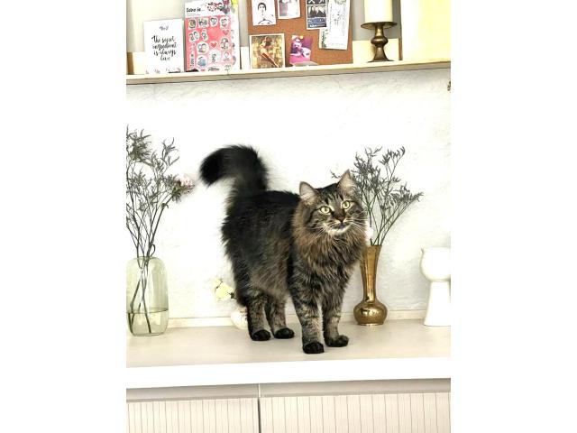 Пропала кошкаОкрас: серо-коричневый в полоску, пушистая. Пугливая, не контактная.
